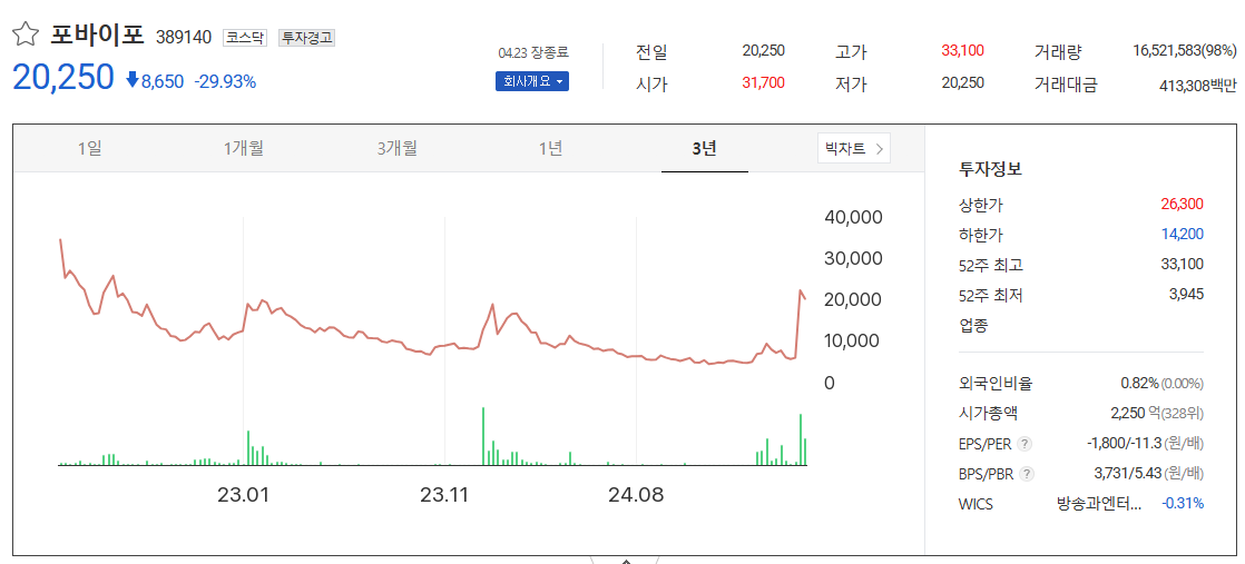 아직은 ‘가능성’ 단계이지만, 이 가능성은 단순한 테마가 아닌 실현 가능한 시나리오에 가깝다. 투자자라면, 지금 이 전환의 흐름 속에서 포바이포의 중장기 가치 재평가를 기대해볼 수 있다.